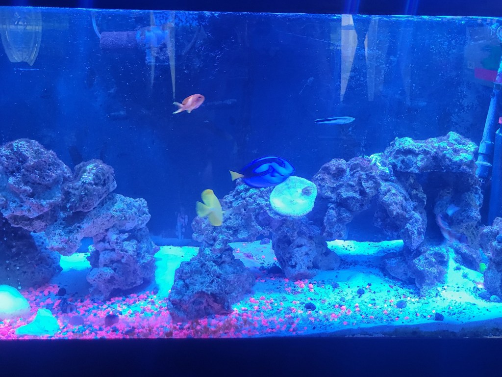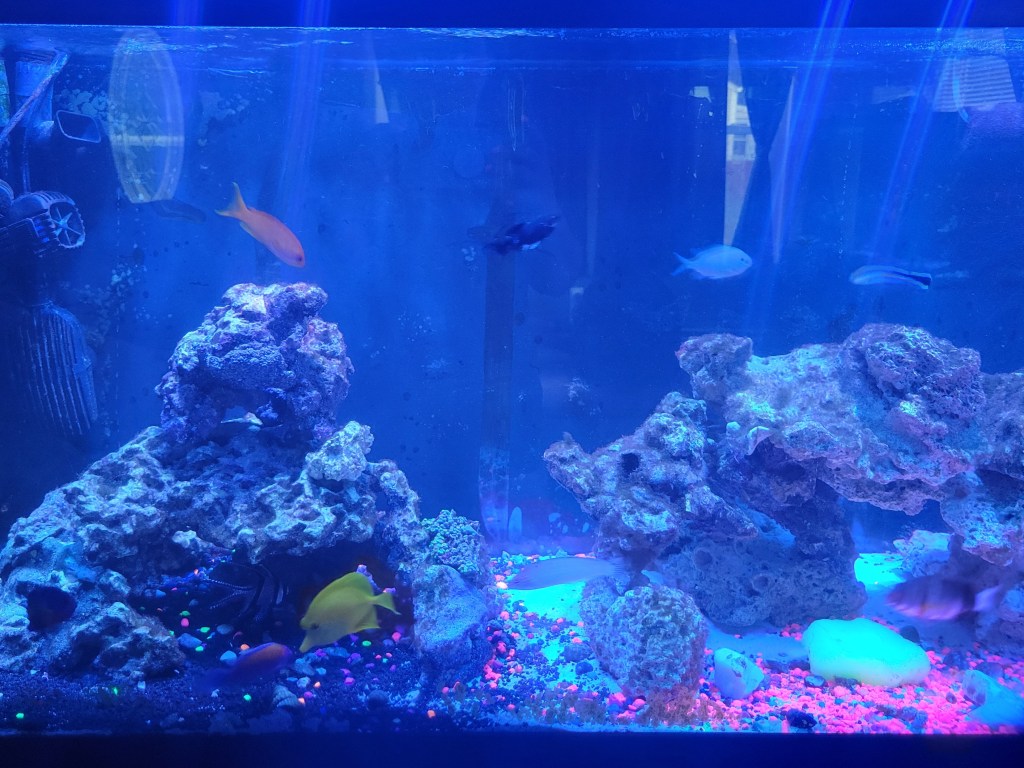 Here I am on a Sunday morning, drinking my coffee and watching the news on a Tropical storm heading our way. When did I become my grandparents?! But as I sit here blogging I can’t help but hope we don’t lose power. Why? I’m glad you asked. Well a power outage is a threat to my 4 fish tanks (2 even more specifically). Yes you read that correctly, that is what I’m worried about lol not the fridge, air conditioner or entertainment being ruined by no power. Nope I worry because no power can be devastating for the 2 salt water tanks. They rely on filters, heaters and wave makers for oxygen and clean water. All which require electricity. We do have some battery powered air bubble stones to keep the water agitated which should provide the oxygen needed *sigh* hopefully!